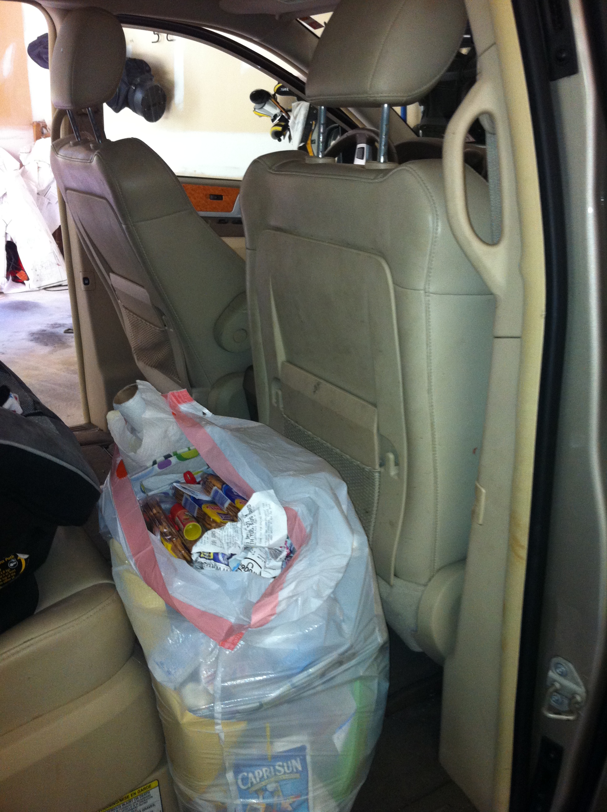It’s not all toys and food in my car though. What Hubby doesn’t realize is what he might view as “trash” is really my arsenal of motherly preparedness. Those moldy sippy-cups can be washed and used in a thirst emergency. That jacket that was stripped and thrown on the floor last month becomes a spontaneous trip to the park when it is too cold to be without cover. Just last week, my daughter started coughing and ended up throwing up. I saw that gag coming and just so happen to have a full sized towel in my car to throw over her and catch her ick before it tainted yet another car seat.